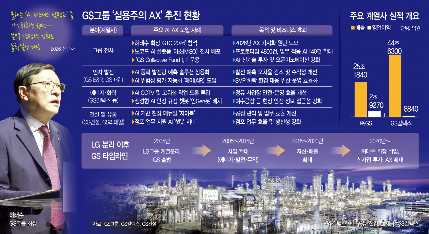 취임 7년 차를 맞이한 허태수 GS그룹 회장은 이와 같은 구조적 한계의 해법으로 '현장 중심의 AI 전환(AX)'을 꺼내 들었다. 단순한 최신 IT 기술 도입을 넘어 그룹의 근간인 오프라인 '피지컬(Physical) 사업'의 체질을 근본적으로 개선하겠다는 구상이다.