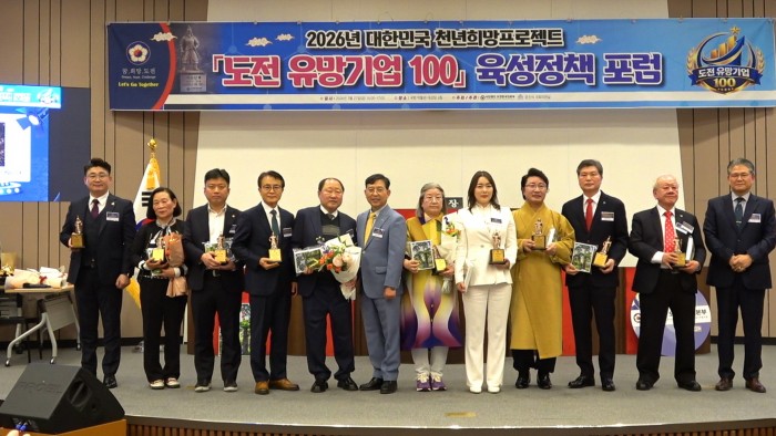 대한민국의 미래 성장기업을 발굴하고 육성 정책을 논의하는 「2026 도전 유망기업 100 인증 및 육성정책 포럼」이 지난 27일 국회 박물관 대강당에서 열렸다. 기업인과 국회 관계자, 전문가 등 300여 명이 참석한 가운데 성황을 이뤘다.