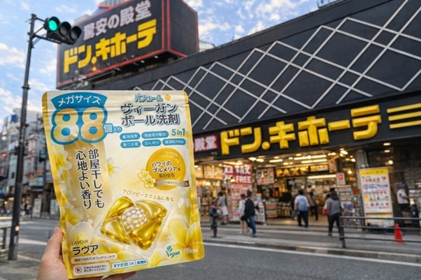 | 일본 돈키호테에 입점하는 ‘라브아’의 신제품 퍼퓸 비건 캡슐세제. AI 활용한 이미지 |
