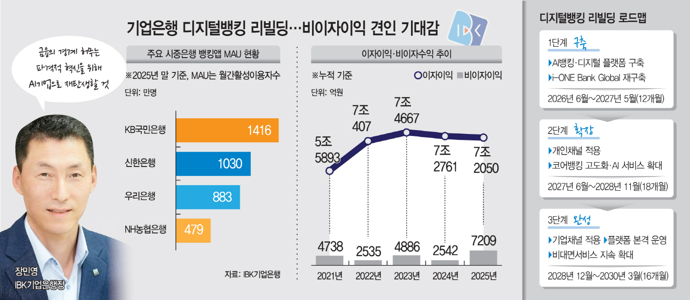 이 같은 대형 프로젝트 추진 배경에는 플랫폼 경쟁력 확보의 필요성이 자리한다. 주요 시중은행들은 모바일 앱 이용자 기반을 확대해왔다. 지난해 말 기준 KB국민은행 'KB스타뱅킹'은 1416만명, 신한은행 'SOL뱅크'는 1030만명 수준의 MAU를 확보하고 있다. 반면 기업은행은 이용자 규모 측면에서 상대적으로 부족하다는 평가가 이어져 왔다.