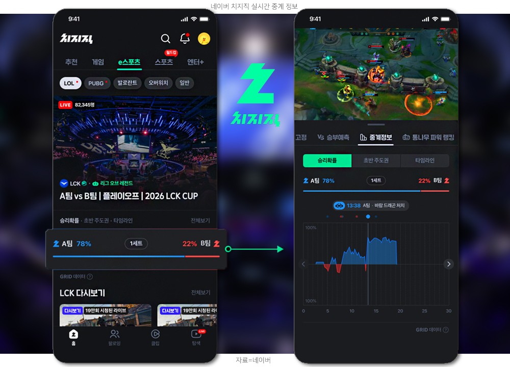 네이버는 스트리밍 플랫폼 치지직이 LoL 챔피언스 코리아(LCK) 개막에 맞춰 '실시간 중계 정보' 기능을 선보인다고 1일 밝혔다.