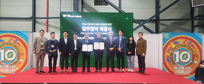 이날 두 기관은 AI 푸드테크 등의 첨단기술이 접목된 중소식품기업을 발굴하여 지원하는 목적으로 하는 업무협약을 체결하였다.