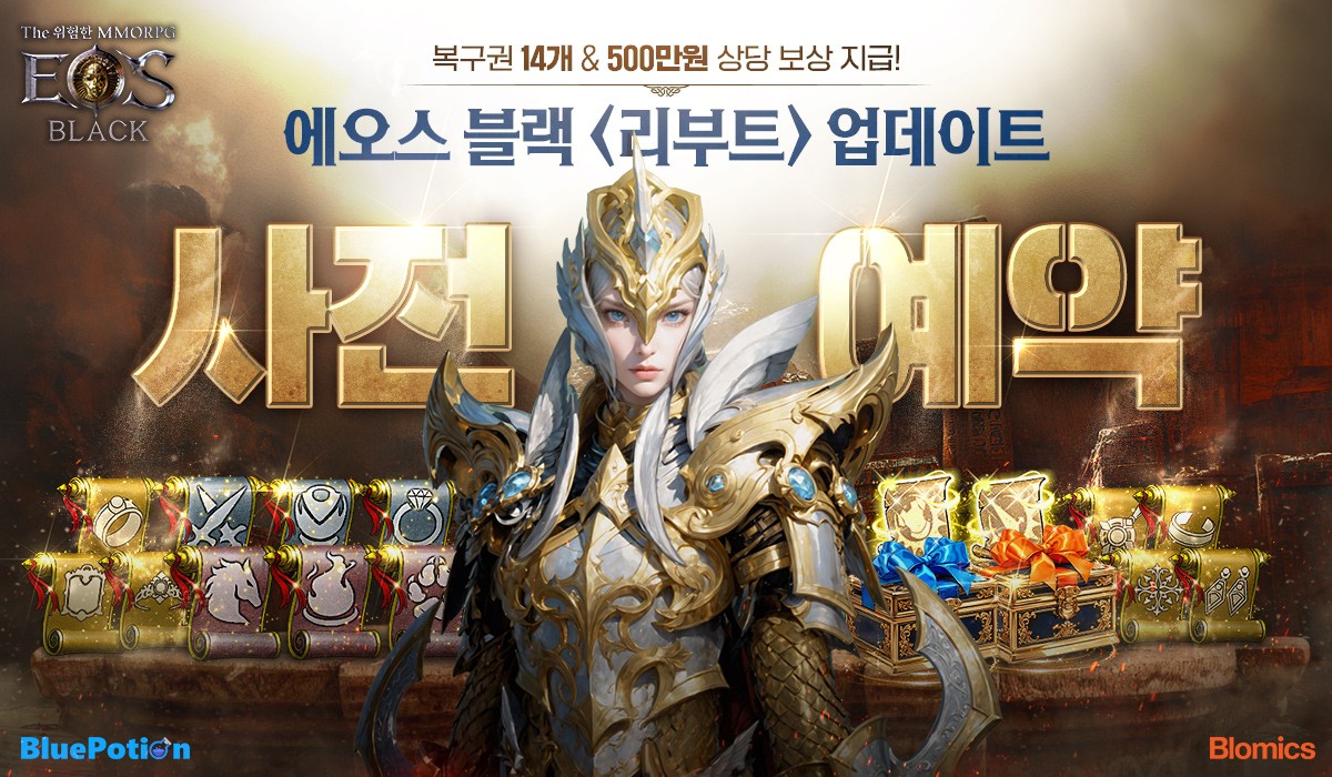 블로믹스와 블루포션게임즈가 공동 서비스하는 모바일 MMORPG 에오스 블랙이 오는 23일 '리부트' 업데이트를 앞두고 있다. 과금 제한 신규 서버 출시와 성장 구조 전면 개편을 중심으로 한 이번 업데이트를 두고 유저들의 기대감이 커지고 있다.