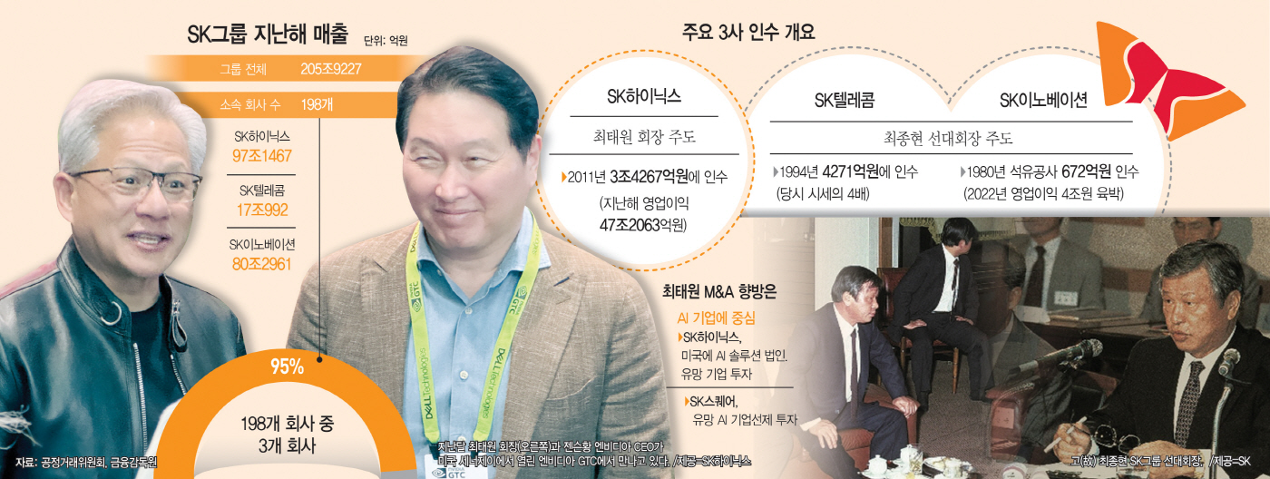 반도체와 에너지, 통신 등 현재 SK그룹의 3대 축이다. 공통점은 모두 인수합병(M&A)으로 탄생해 SK그룹의 전환점으로 자리 잡게 됐다. 당시 인수 결정은 단순한 사업 확장이 아니라 산업 구조 변화에 대한 선제 대응으로 평가된다.