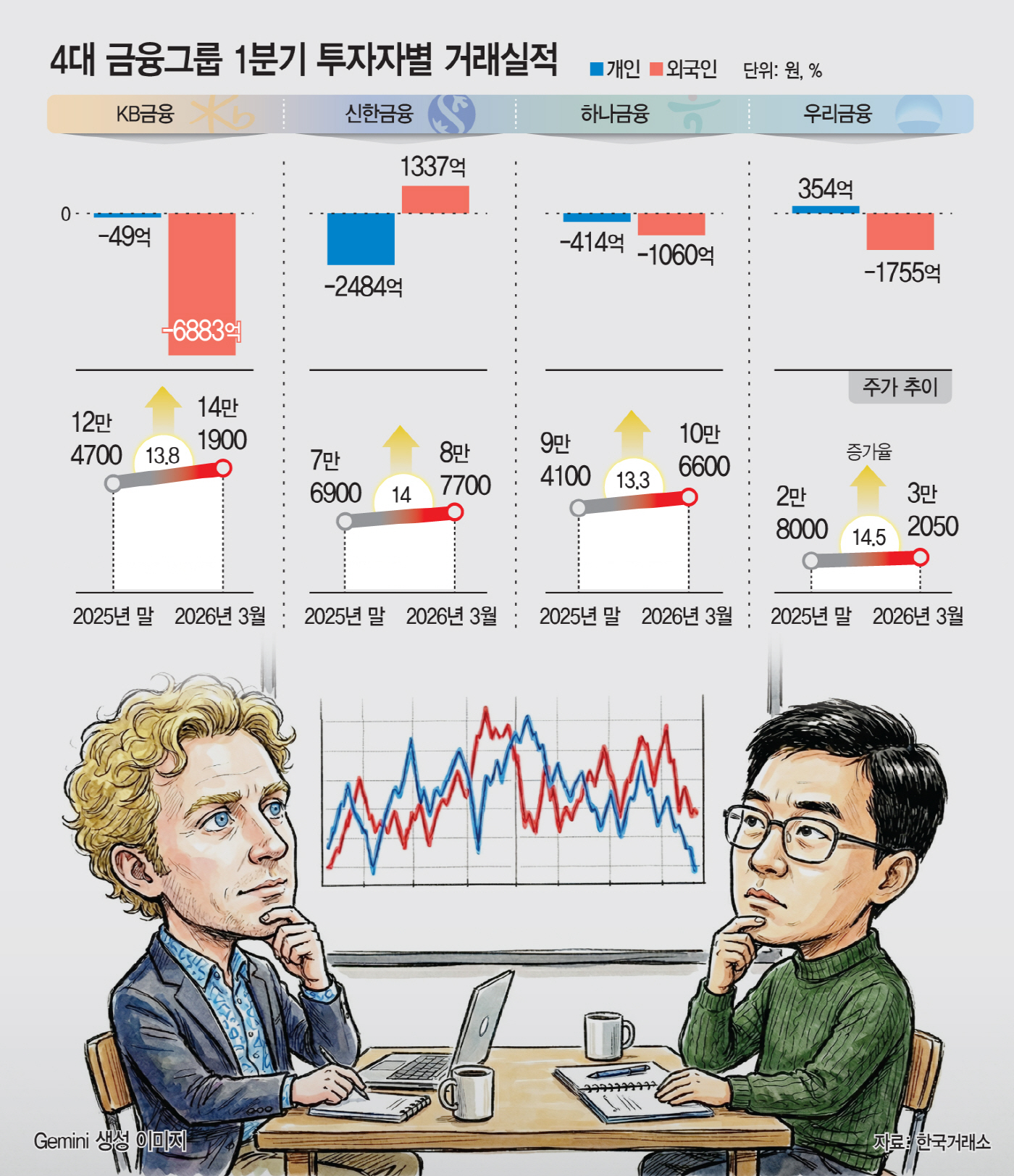 외국인 ‘신한’ 개인 ‘우리’… 변동성 속 엇갈린 금융주 투자