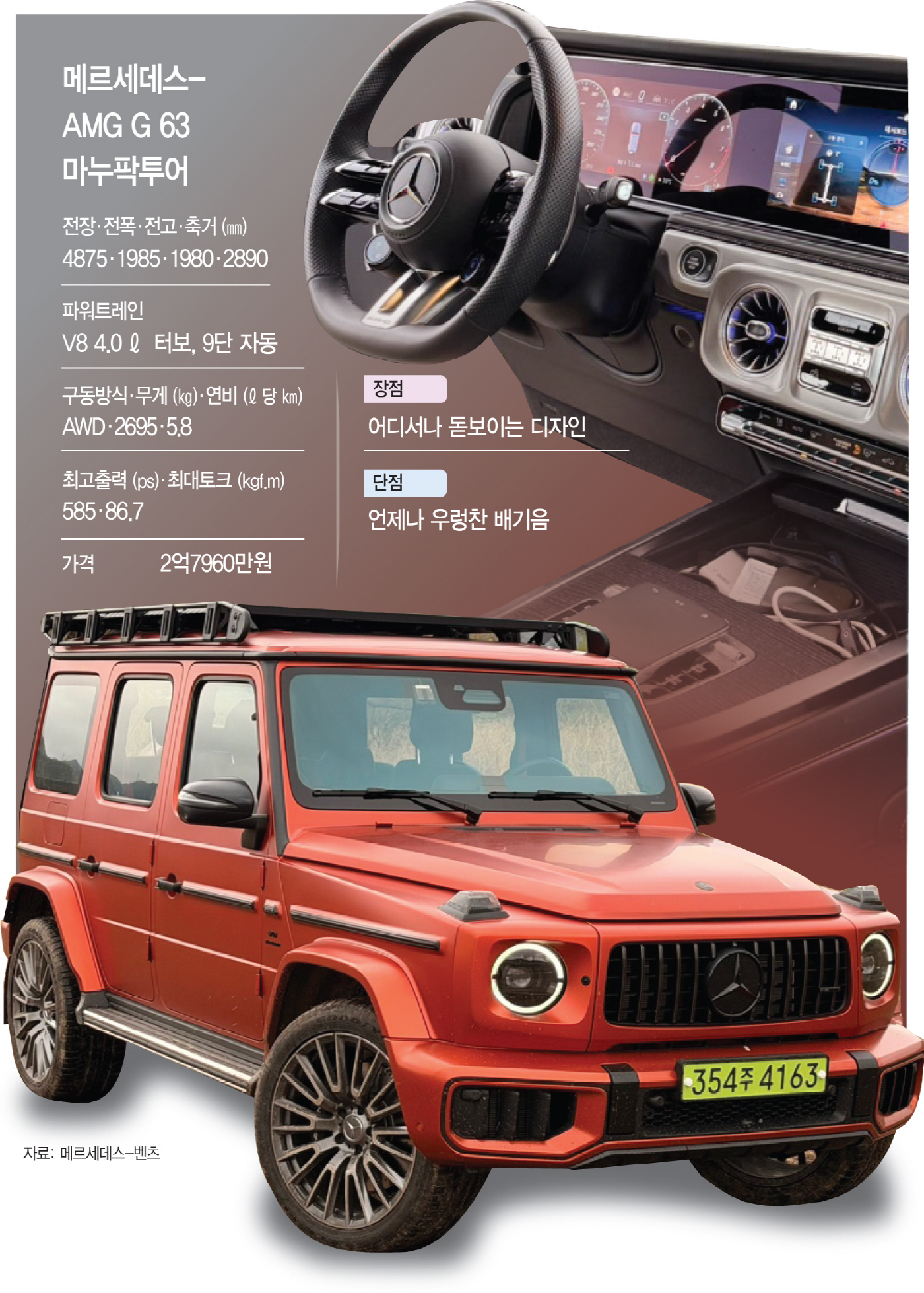 G 63은 완벽한 차는 아니다. 연비도, 승차감도, 2억을 훌쩍 넘는 가격도 합리적이라고 보긴 어렵다. 그럼에도 이 차는 특별하다.