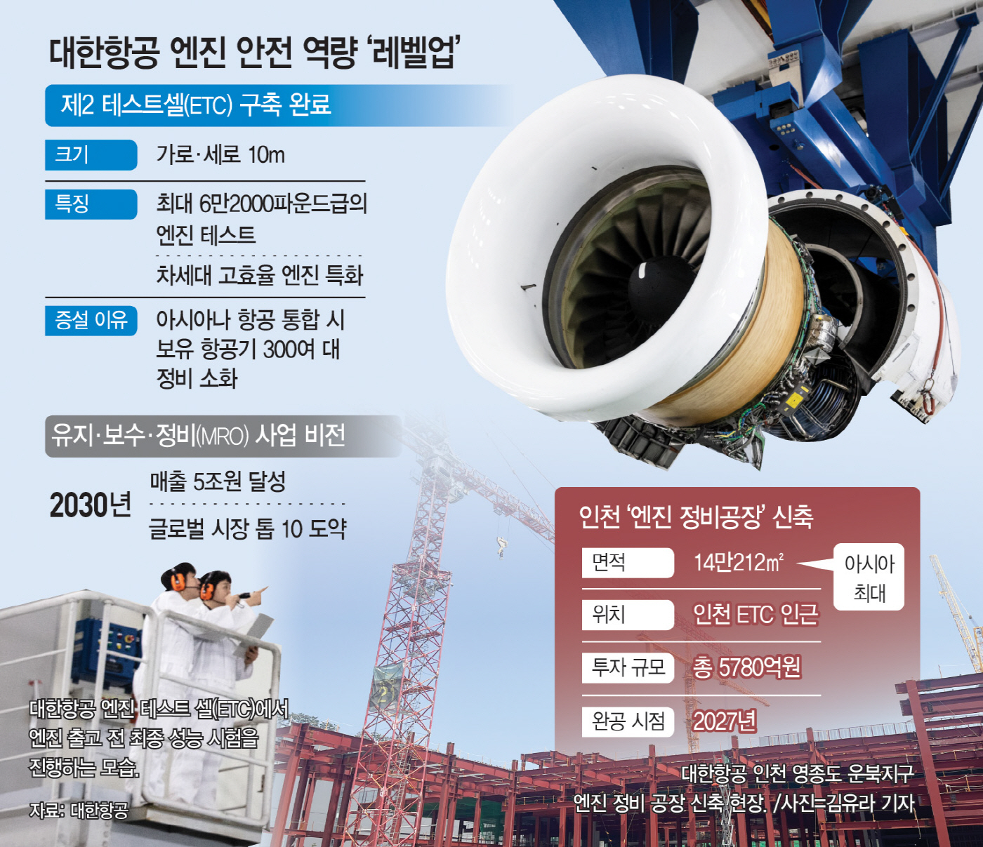 현재 대한항공의 정비 공장은 경기 부천에 위치해 있으나, 연내 테스트셀 인근으로 둥지를 옮기고 시너지를 확장할 계획이다. ETC와 불과 열 걸음 떨어진 부지에서 새 공장의 신축 공사가 한창 진행되고 있다. 오는 2027년 가동을 시작하면, 항공기 엔진 정비의 시작과 마무리를 한곳에서 소화할 수 있는 '원스톱 서비스'를 제공하겠단 전략이다. 대한항공의 신규 엔진 정비 공장은 총 5780억원을 투입해, 아시아 최대인 연면적 14만212㎡ 규모로 건설 중이다.