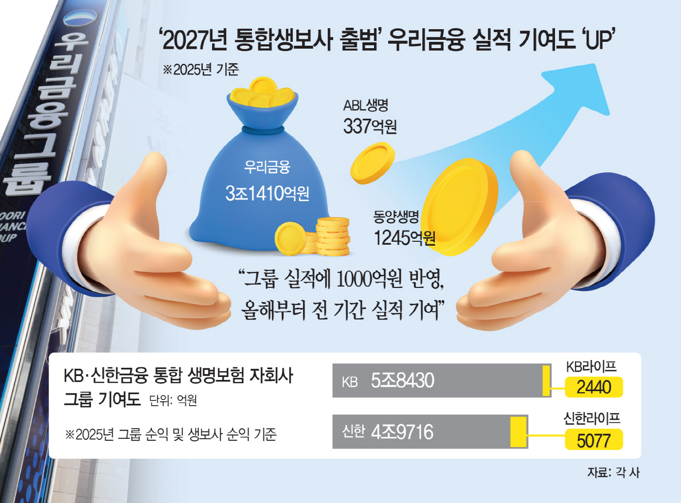 통합 생보사가 출범하게 되면 자산 규모는 60조원에 육박하고, 전속 FC도 3000명을 넘어서게 된다. 생명보험업계 5위로 올라서게 되는 만큼, 우리금융 내 핵심 비은행 자회사가 될 수 있을 것으로 기대된다.