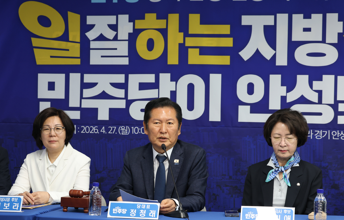 정 대표는 이날 경기도 안성시에서 현장 최고위원회의를 열고 추미애 경기지사 후보와 3선에 도전하는 김보라 안성시장 후보를 치켜세웠다. 민주당 지도부는 경기지사 선거는 물론 국회의원 재보궐선거가 치러지는 평택을·안산갑·하남갑에서도 승리하겠다는 의지를 드러냈다.