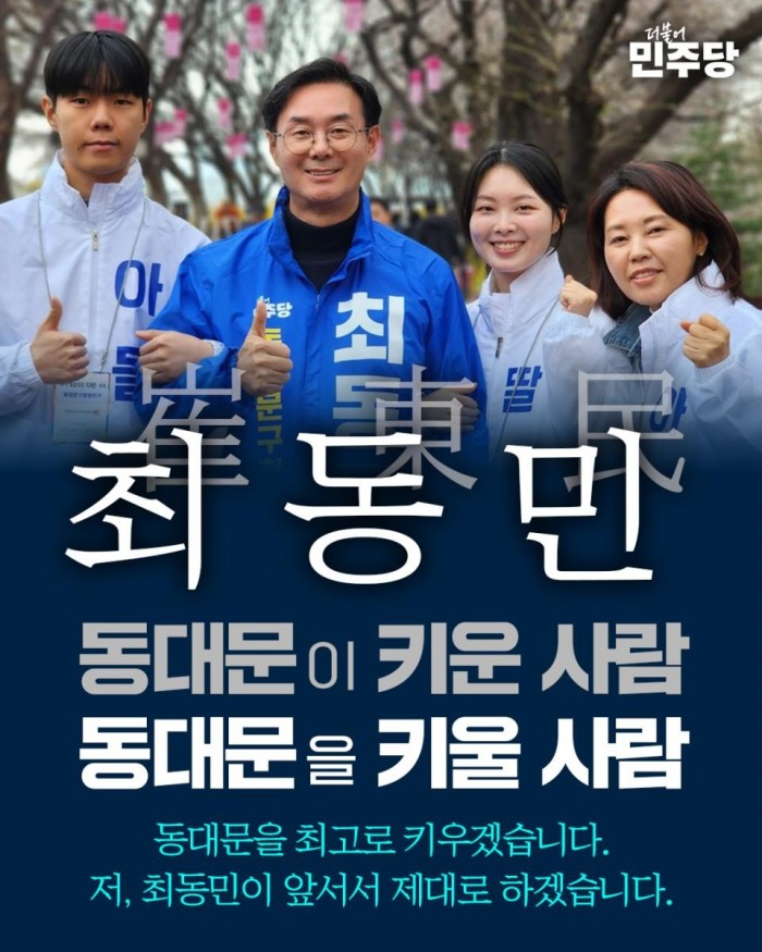 최동민 후보는 “동대문은 더 크게 도약할 잠재력이 충분한 도시”라며 “검증된 행정 경험과 현장 이해를 바탕으로 일자리는 넘치고, 복지는 따뜻하며, 주민이 자부심을 느끼는 앞서는 동대문을 만들겠다”고 강조했다.