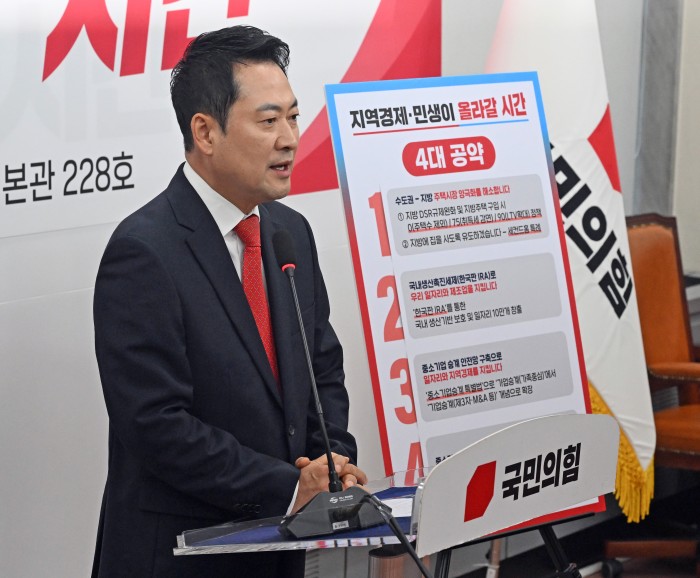 장동혁 국민의힘 대표가 29일 국회에서 지역·민생 공약 발표를 하고 있다. /송의주 기자