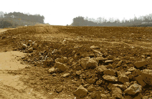 | 익산-장수(1공구 ; 삼환기업); 성토공사를 하면서 성토재료의 최대크기인 30cm이상의 암괴를 포설하고 있으며 다집두께 30cm를 초과했다. |