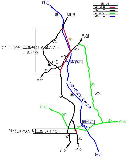 금산~대전간 도로 위치도 |