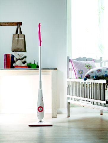 여기에 살균트레이 를 제공해 바닥 청소뿐 아니라 침구류나 소파 등 아기 피부와 손에 닿는 패브릭 제품까지 쉽게 살균까지 가능핟. 뿐만 아니라 순간분사식으로 예열 시간이 40초에 불과해 더욱 빠른 스팀살균청소가 가능하다. 무게는 1.95Kg로 가벼워 힘들이지 않고 청소할 수 있다.