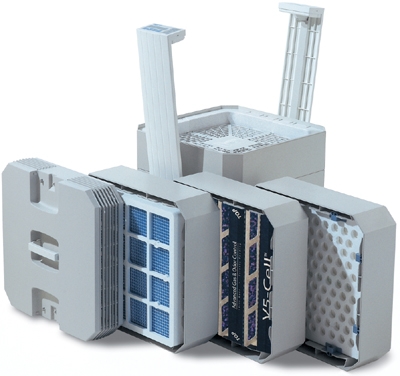 특히 알레르기유발인자와 곰팡이 및 바이러스를 제거하는 하이퍼헬파필터의 경우 0.3미크론 이하의 초미세입자를 99.97% 제거할 수 있는 EN1822 인증을 받아 일반 공기청정기에 비해 약 100배 이상의 미세먼지제거율을 보인다.