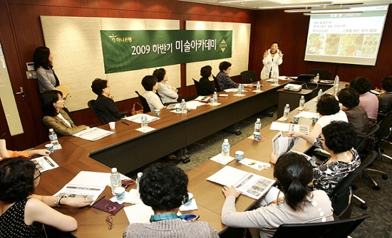| 하나은행의 문화아카데미 교육에 참여한 고객들이 강의를 듣고 있다. |
