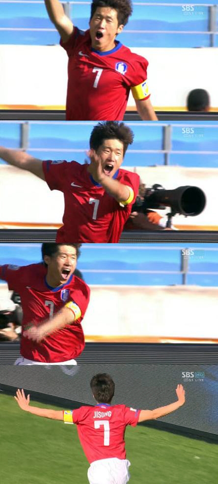 | 박지성 골 세리머니 방송캡쳐. |