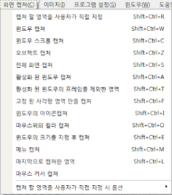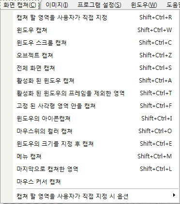 캡쳐기능마다 기본 단축키가 설정되어있으며, 환경설정에서 단축키 설정을 편하신대로 변경하여 사용가능합니다.