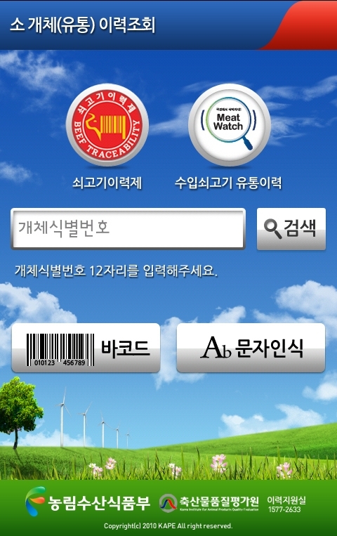 쇠고기이력제 어플리케이션(안드로이드폰용).