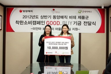 동양매직은 작년 10월 굿네이버스와 착한소비 캠페인 ‘굿바이 협약식’을 가졌으며 비데 판매금의 일부를 모아 총 1000만원의 기부금을 전달했다. 이 기부금으로 내달 미얀마 보갈레이 지역에 화장실 100여개 건립을 완료할 예정이다.