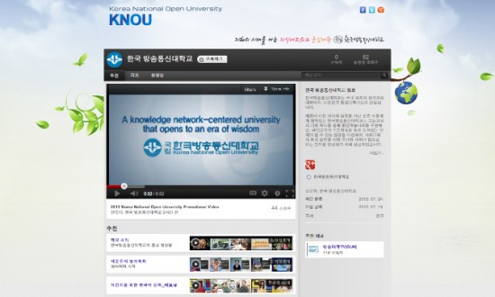 한국방송통신대학교(총장 조남철)는 30일 국내 대학 최초로 ‘유튜브 EDU'에 방송대 공식 채널을 개설했다고 밝혔다.