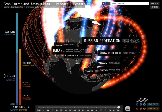 구글은 이 사이트를 통해 자동권총이나 소총, 경기관총 등 국가 간 무기 수출입 현황을 적나라게 보여준다.