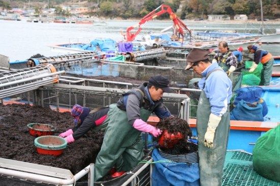 청정해역인 완도에서 김 생산이 활발하게 진행되고 있다.