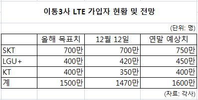 특히 올해 말까지 SK텔레콤, LG유플러스, KT는 각각 750만명, 450만명, 400만명을 돌파할 것으로 내다보고 있다.