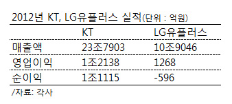 LG유플러스도 매출에서는 지난해 10조9046억원으로 전년보다 18.7% 성장했으나 영업이익은 54.6%나 감소한 1268억원에 그쳤다. 순손실 규모도 596억원으로 적자로 돌아섰다.