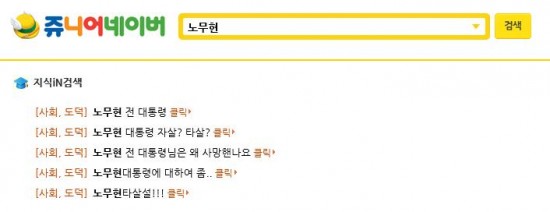 | 쥬니어네이버에 ‘노무현’을 검색하면 ‘노무현 타살설’과 같은 확인되지 않은 정보가 버젓이 나타난다. |