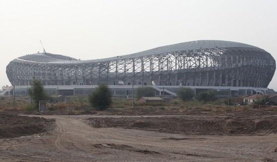 네이멍구자치구 츠펑시가 야심차게 건축하고 있는 종합 스타디움. 완전히 베이징올림픽 주경기장인 냐오차오의 짝퉁으로 불려도 전혀 손색이 없다./제공=중국신문사.