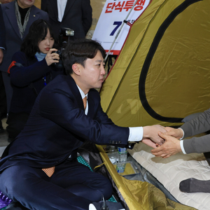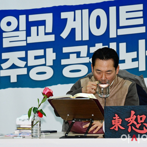 [포토] '단식 6일째' 목 축이는 장동혁 대표