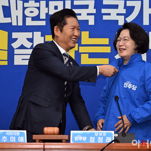 [포토] 파란 점퍼 입는 추미애 경기지사 후보