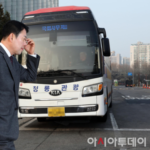 [포토] 장동혁 대표 '공공기관 차량 5부제 통근버스 출근'