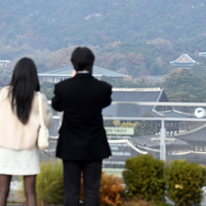 [포토]이재명 대통령 청와대 복귀 임박, 멀리서 청와대 바라보는 시민들