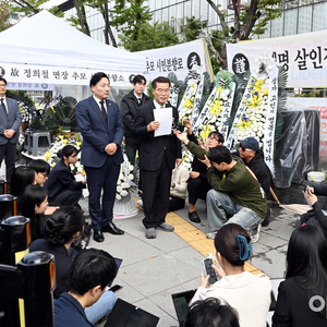 [포토]정희철 면장 분향소앞에서 기자회견 갖는 박경호 변호사