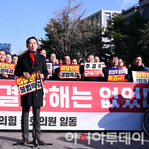 [포토]추경호 의원 구속 심사 규탄대회하는 장동혁 대표와 국민의힘 의원들