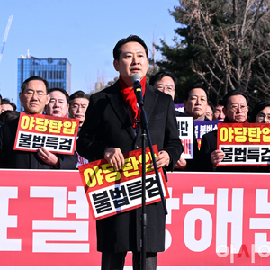 [포토]서울지법앞 규탄대회에서 발언하는 장동혁 대표