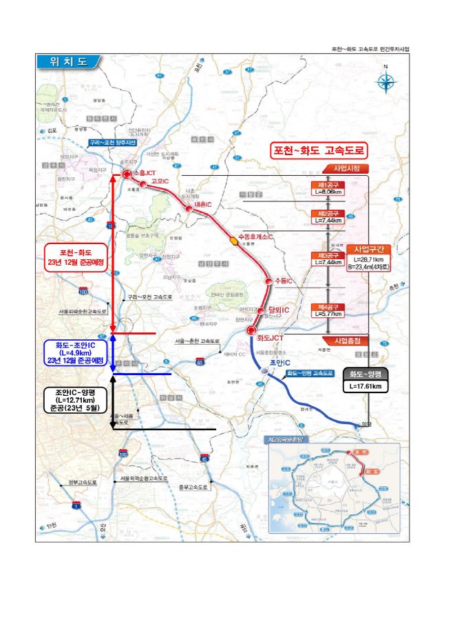 지난 5월에 개통한 수도권 제2순환선(화도~양평) 중 미준공 된 화도~조안IC (4.9km) 구간이 포천-화도 민자고속도로와 연말 동시 개통을 목표로 추진되고 있다. 서울~양양 고속도로 및 중부내륙선과 연결돼 지역 경제 활성화와 주민 삶의 질 향상에 크게 기여할 전망이다.