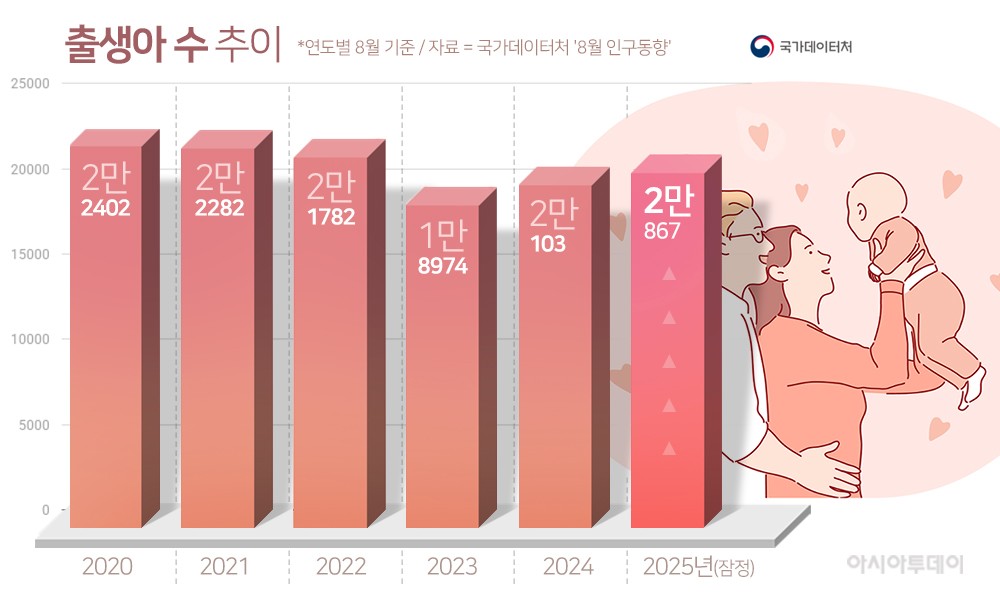 우리나라 연간 출생아 수는 2020년(27만2337명) 30만명대가 무너진 후 2023년 23만28명까지 추락했다. 하지만 지난해 23만8317명으로 반등했고, 올해는 현재 흐름이 계속된다면 25만명대로 올라설 것이라는 전망이 나온다.